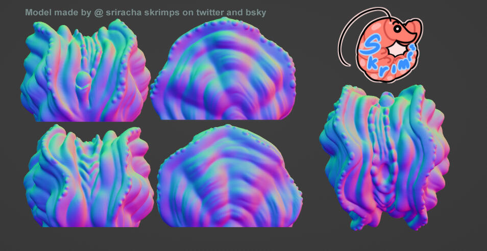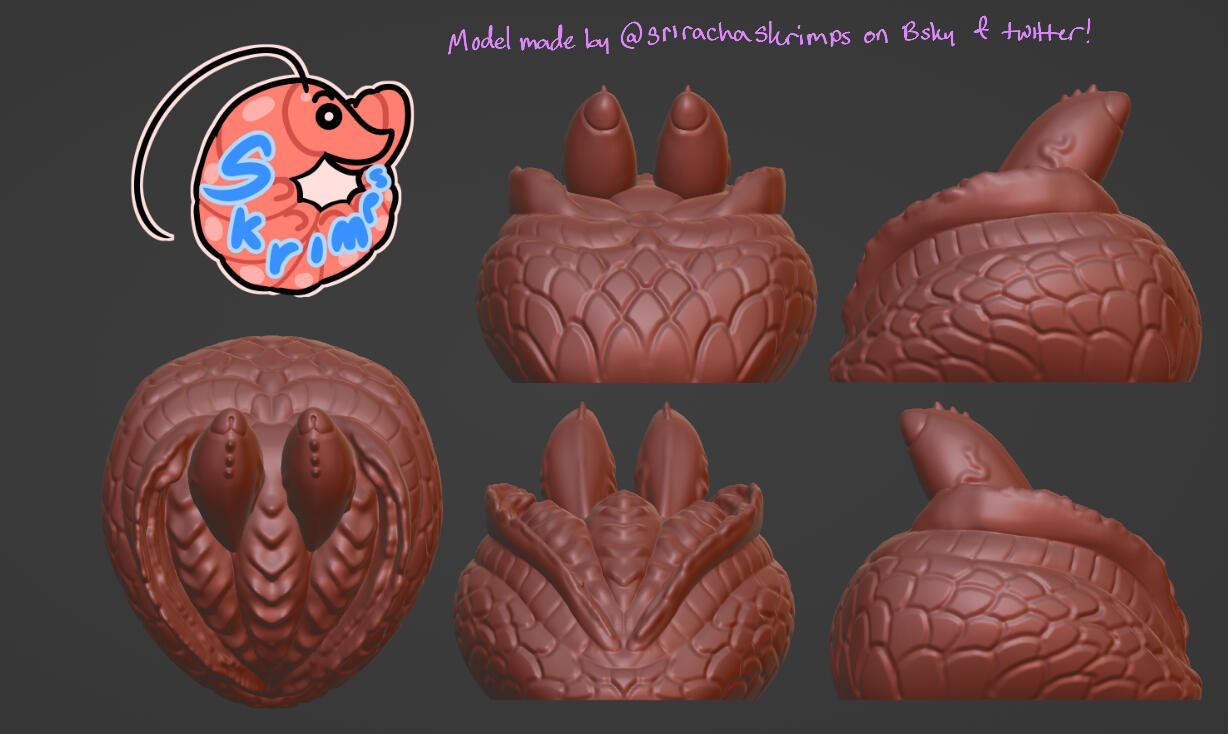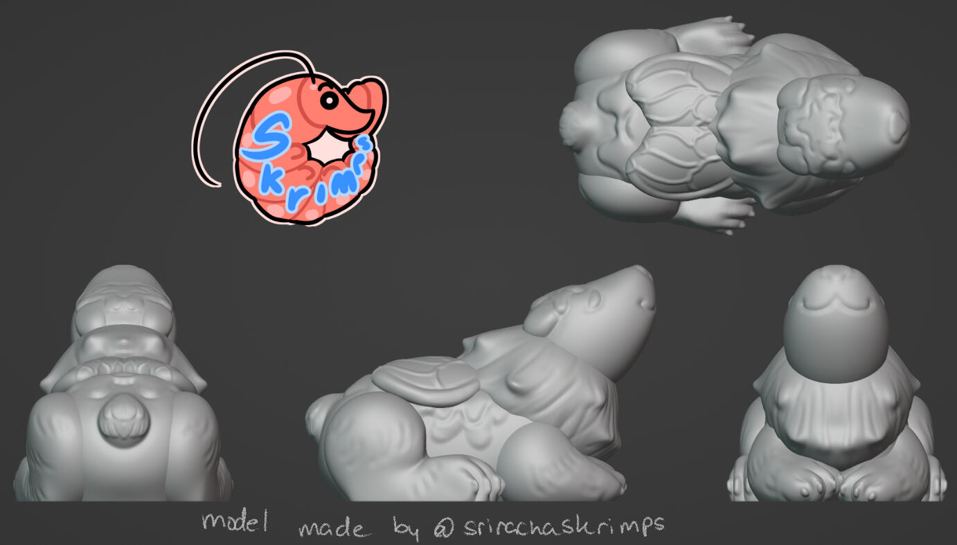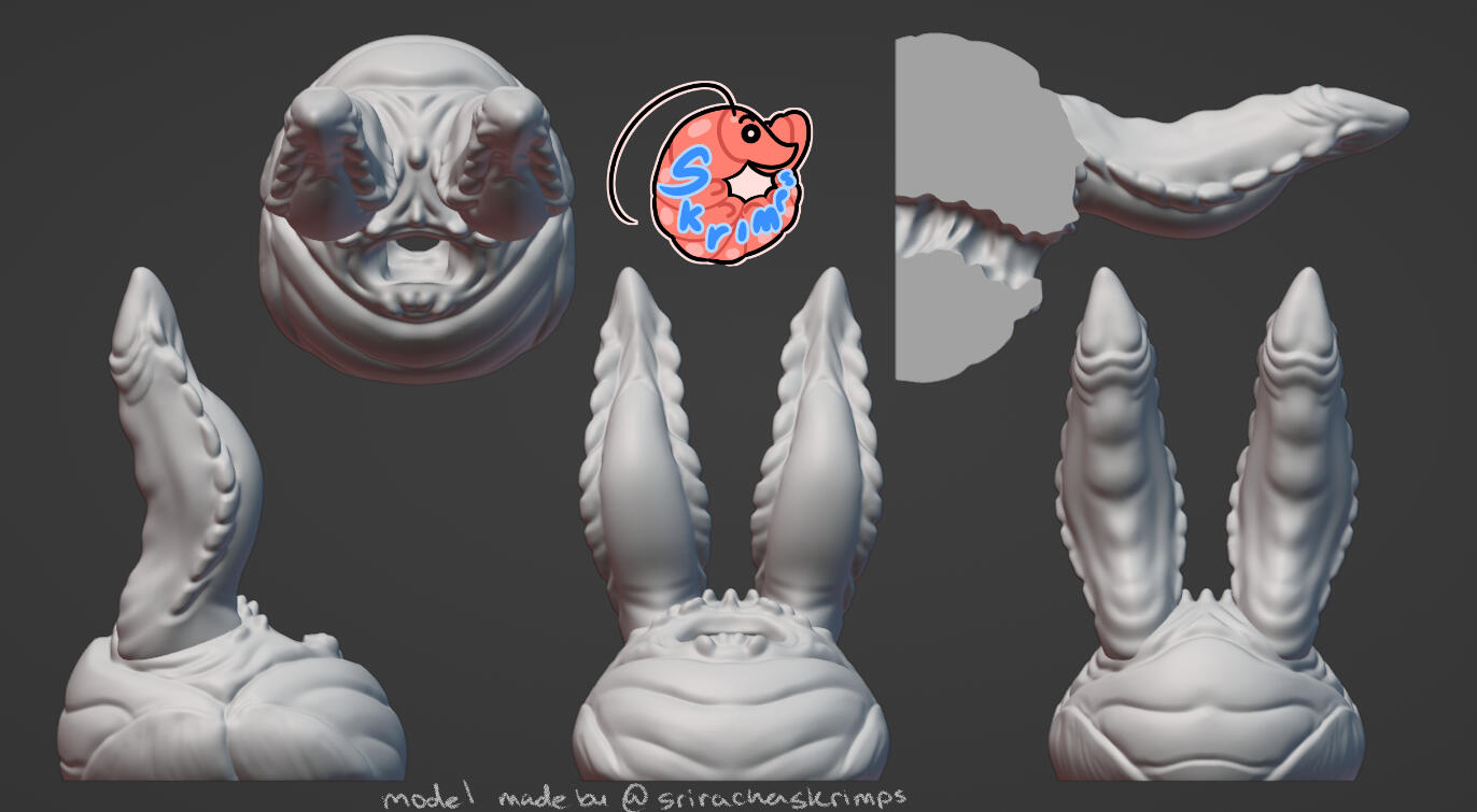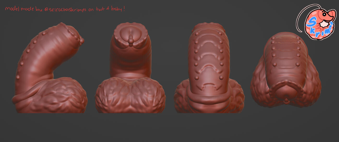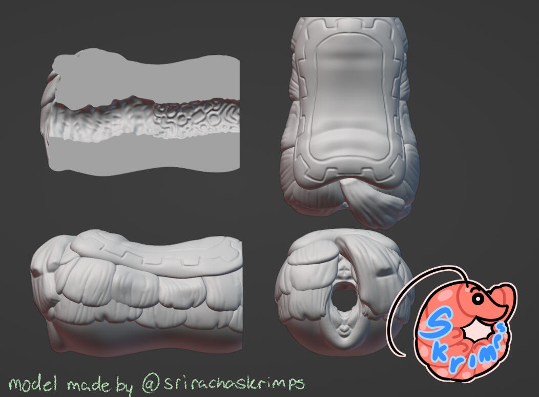 Credit towards me is greatly appreciated! In the case you'd like to credit me, I ask that I be referred to as "Mako", "Skrimps" or "SrirachaSkrimps" and have my Twitter page, Blue Sky page or Carrd linked on the desired credit page, whatever seems most appropriate to the maker.